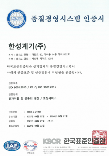 품질경영시스템 인증서 (ISO 9001:2015)