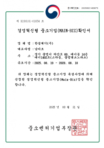 경영혁신형 중소기업 확인서 (MAIN-BIZ)