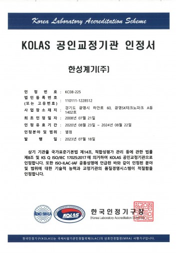KOLAS 공인 교정기관 인정서 (ISO/IEC 17025)