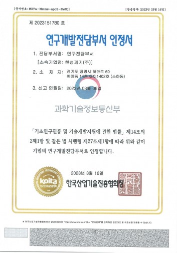 연구개발전담부서 인정서