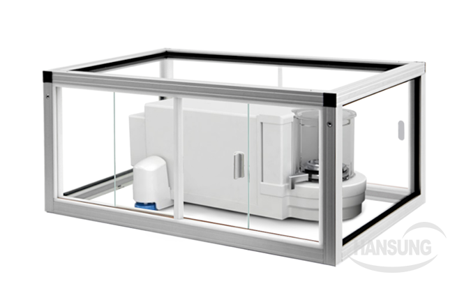 울트라 마이크로 발란스의 기본 구성에는 외부 기류의 영향을 줄이기 위한 방풍 챔버가 포함되어 있습니다. 저울은 챔버 내부에 설치되며, 슬라이딩 방식의 측면 도어를 통해 계량 공간에 자유롭게 접근할 수 있습니다. 저울의 모든 구성 요소는 유리 또는 알루미늄 소재로 제작되어 정전기의 영향을 최소화합니다.