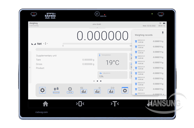 울트라 마이크로 발란스가 항상 최상의 상태로 사용할 수 있도록 실시간으로 점검합니다. 공기 부력 보정을 자동으로 수행하며, 저울의 정기 점검이나 정확도·감도에 대한 감사가 필요한 시점을 사용자에게 알려줍니다.